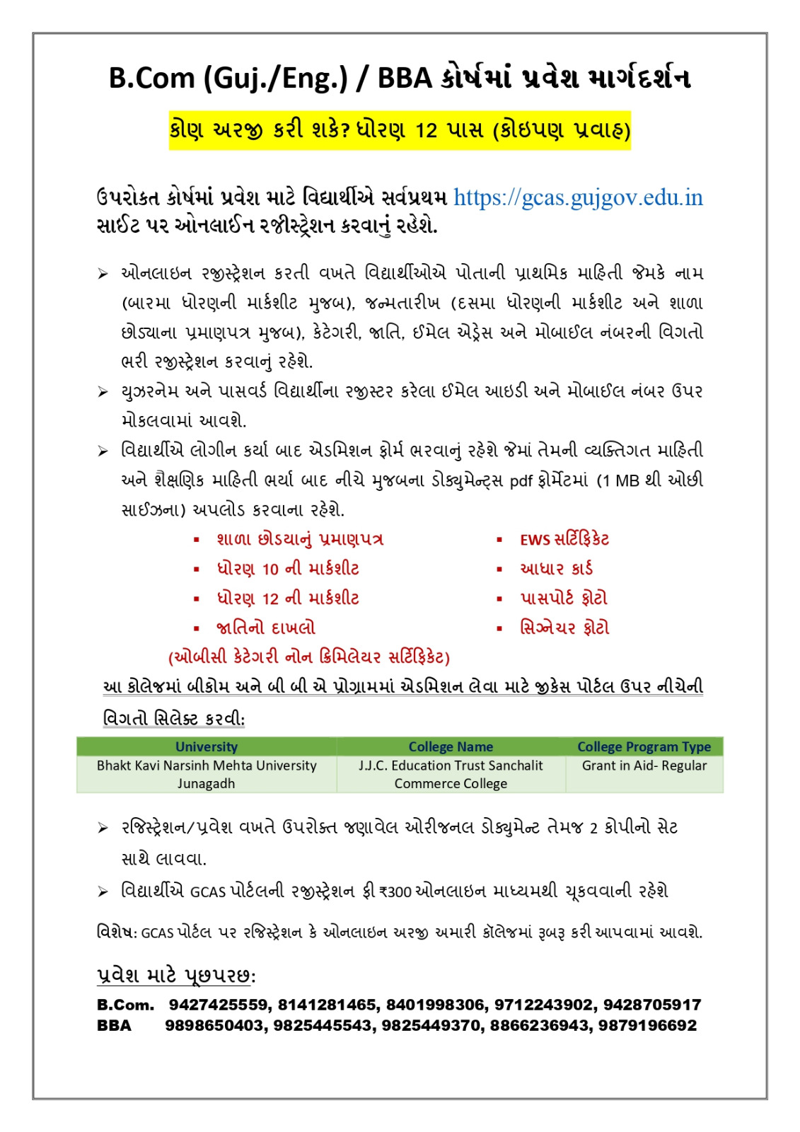 The admission process is online and centralized as per the regulations and guidelines laid down by the Commissionerate of Higher Education, Govt. of Gujarat, Gandhinagar.